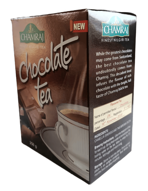 Tea Origin: The black tea used in this blend is typically sourced from the Chamraj Tea Estate in the Nilgiri Hills, known for producing high-quality teas with a distinctive flavor profile. The chocolate infusion adds a luxurious twist to the traditional black tea.