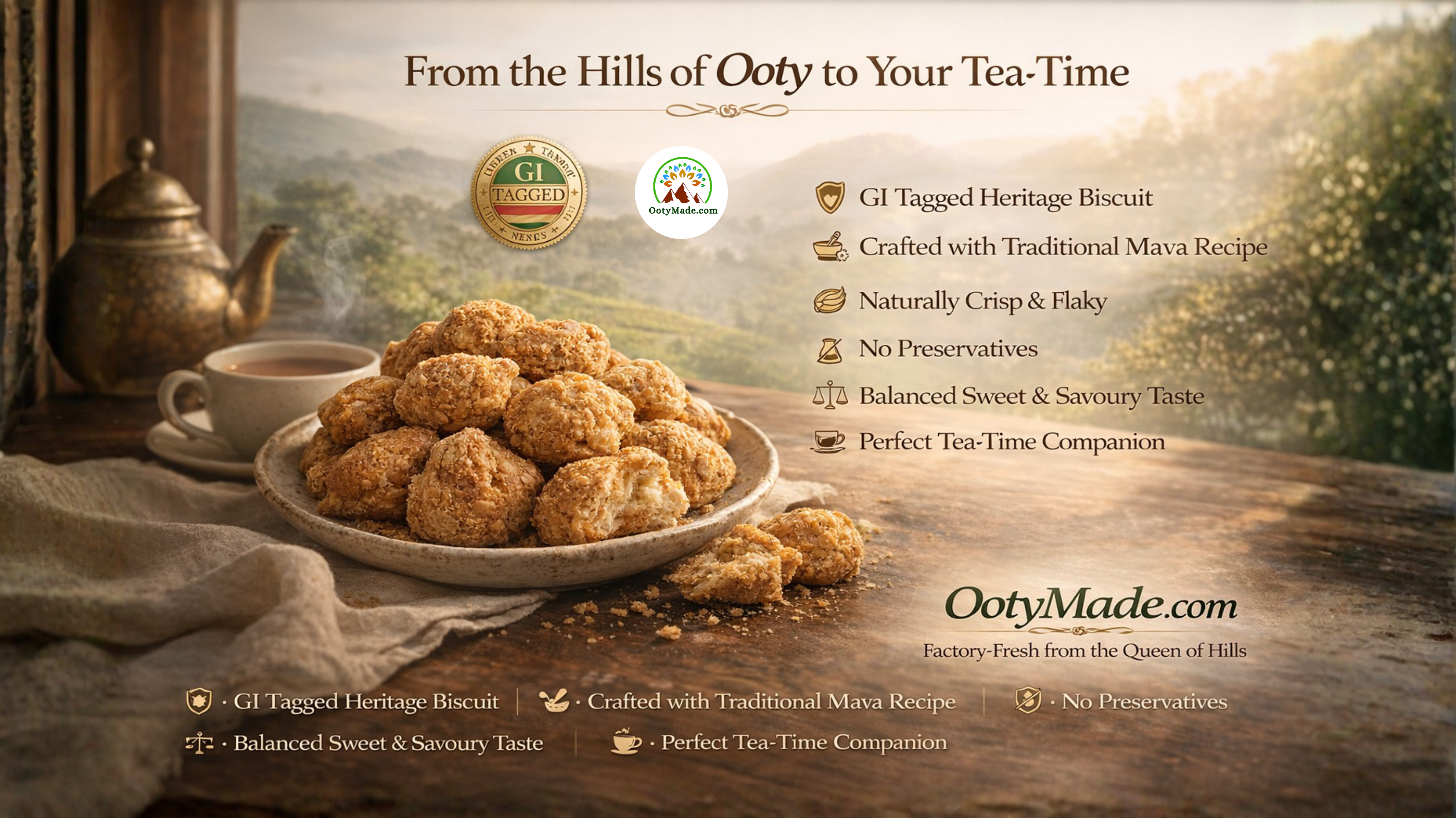 Ooty Special Varkey is not just a biscuit — it is a heritage bakery creation from the Blue Mountains of South India. Recognised with a Geographical Indication (GI) tag in 2022, this iconic snack represents generations of craftsmanship passed down through traditional Ooty bakeries.